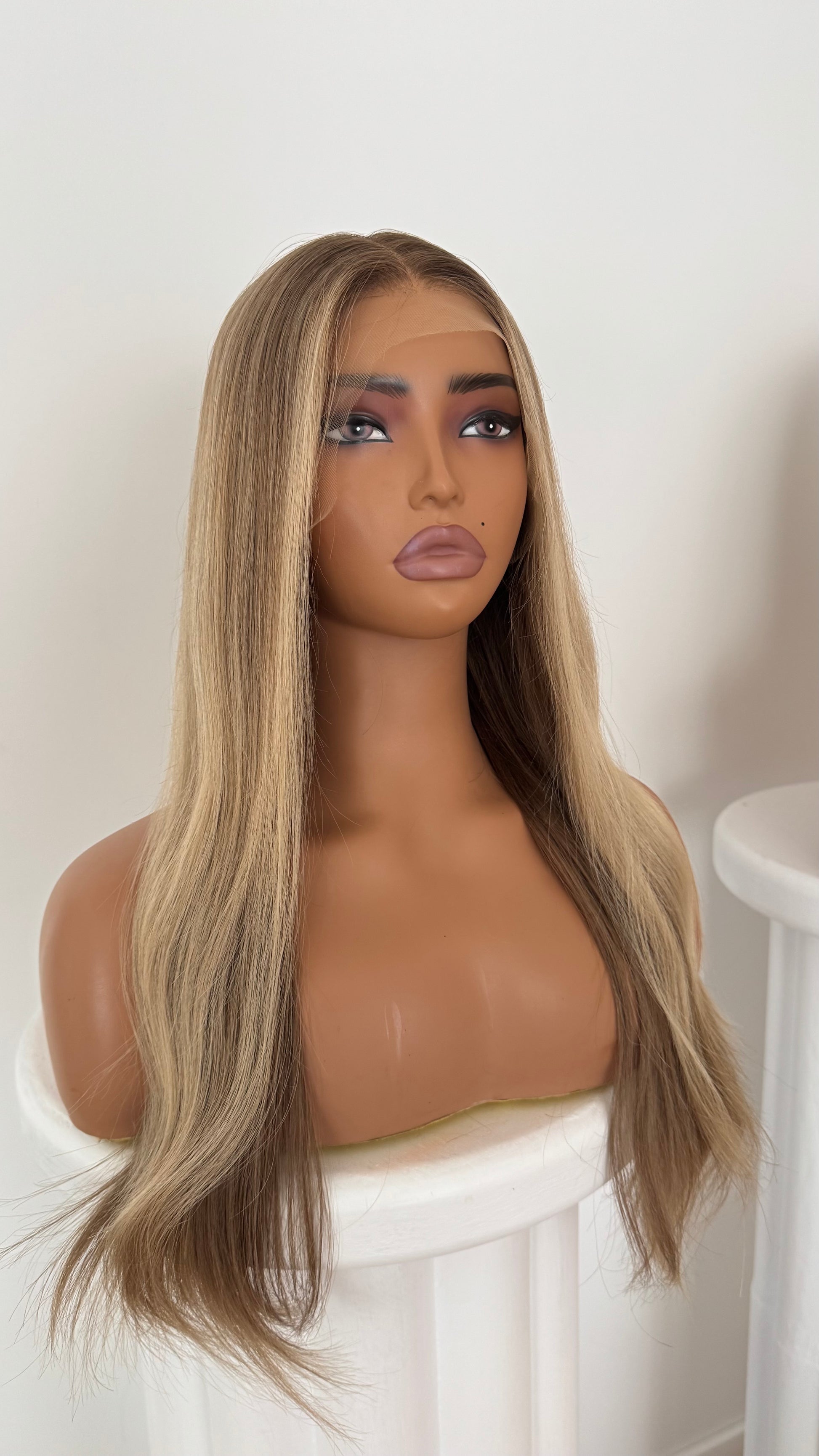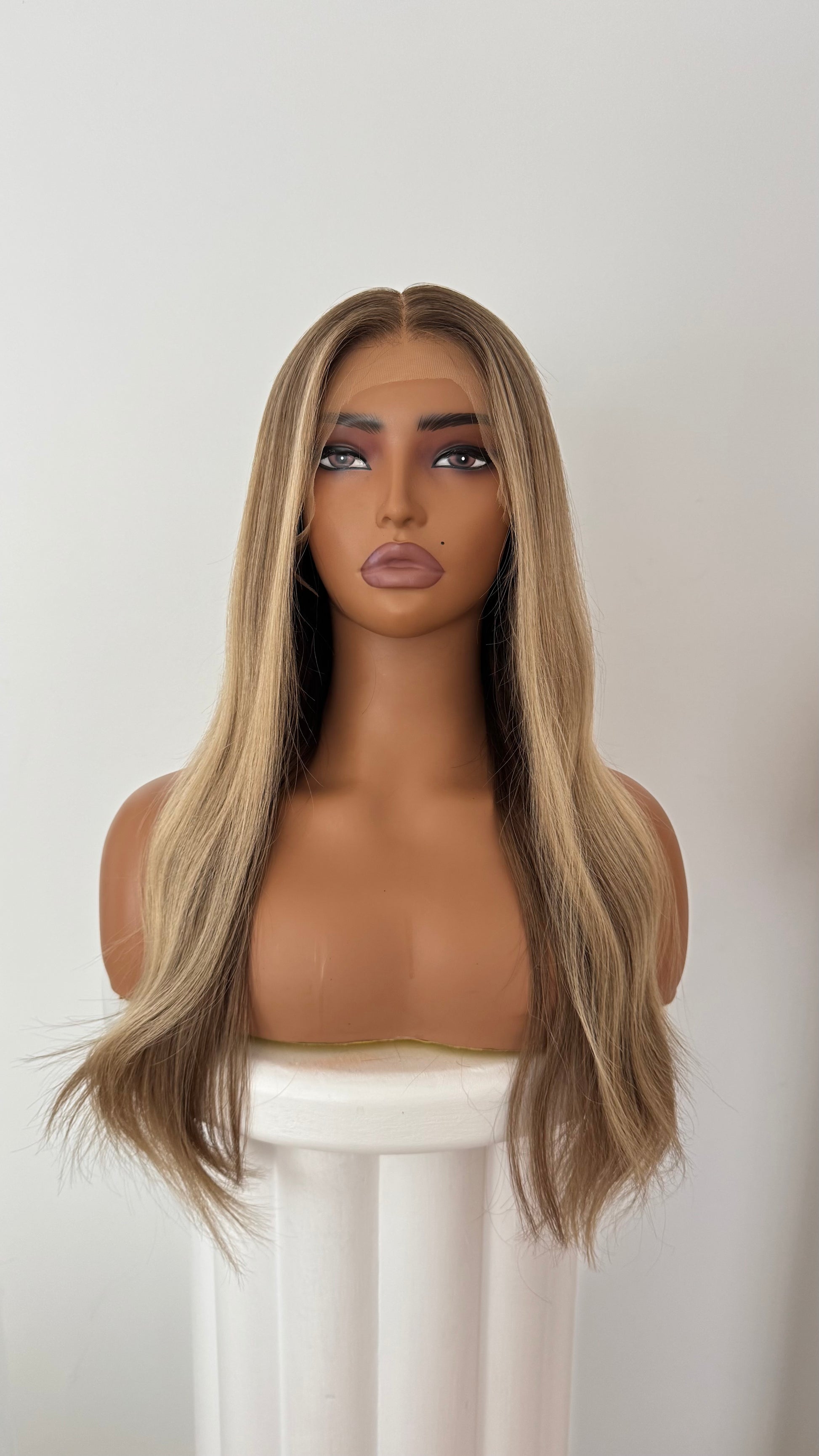 - Colour: Dark blonde balayage with a creamy face frame